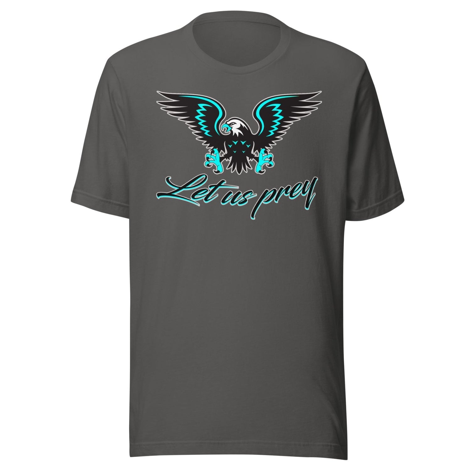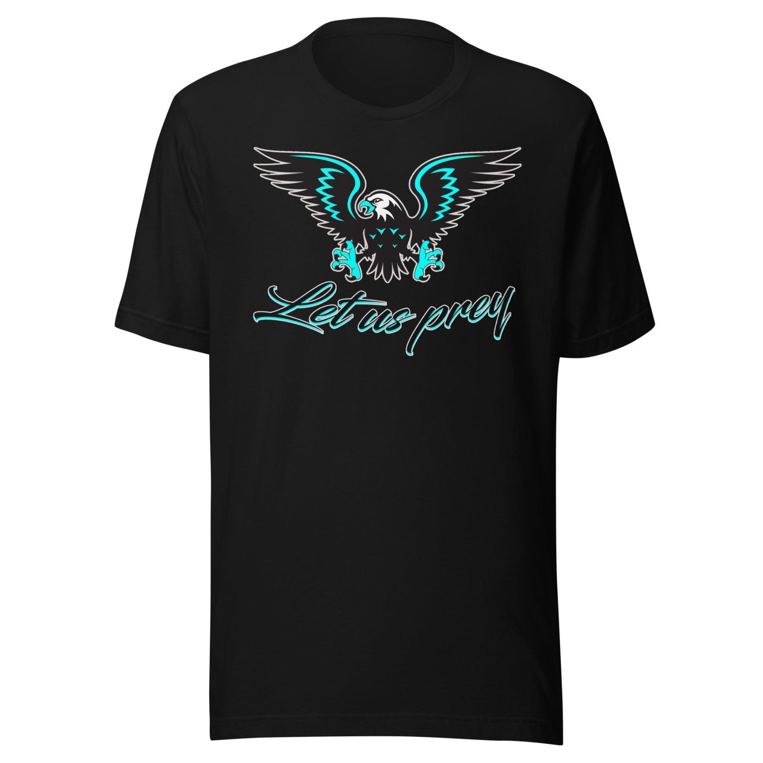 Release your inner predator with our Let Us Prey Eagle Shirt. Featuring a fierce bird of prey design, this shirt will give you a bold and fearless look. Perfect for those who aren't afraid to hunt down their goals. (No eagles were harmed in the making of this shirt!)