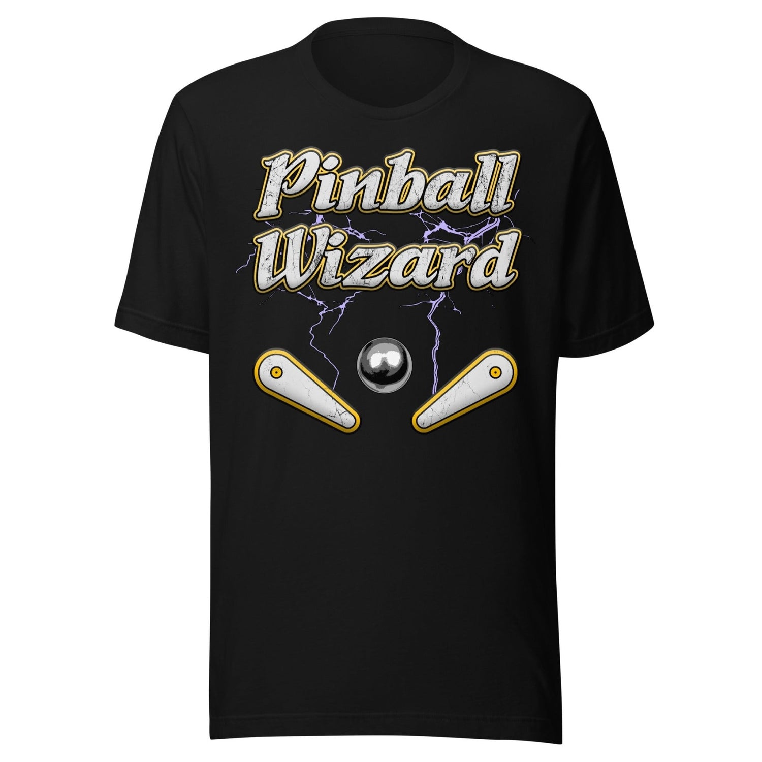 You don't have to be deaf, dumb or blind to be a Pinball Wizard, but it certainly can help. Without no distractions, you can tap into the pure Zen of pinball. Summon your pinball wizardry and look awesome at the arcade in this killer tee, complete with purple lightning and pinball flippers that are ready for the high score.