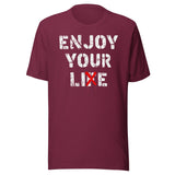 Be inspired to embrace your own unique perspective with the Enjoy Your Lie shirt, inspired by the bold work of Banksy. This shirt is a perfect political statement piece that encourages you to question societal norms and embrace your individuality. Made with high-quality materials, this shirt is both comfortable and thought-provoking.