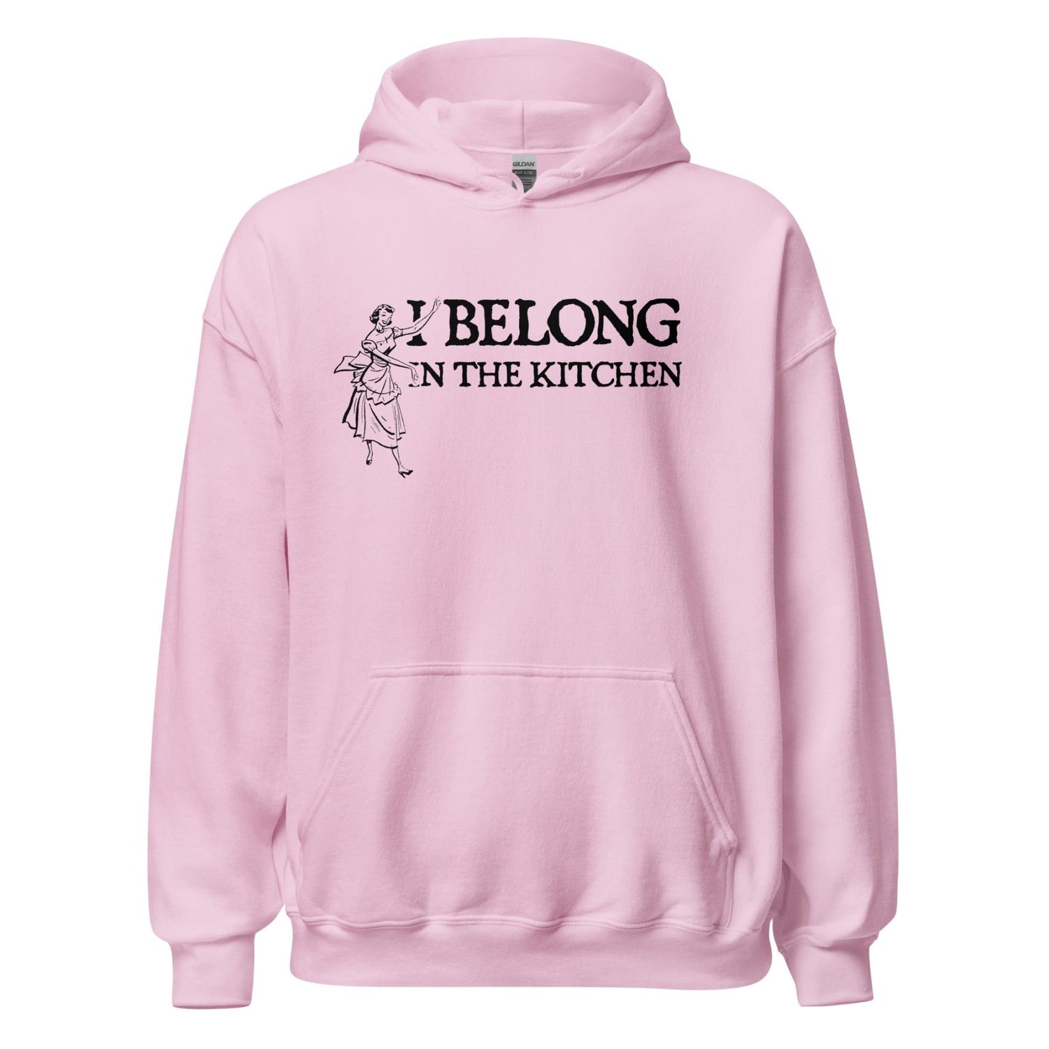 I Belong in The Kitchen Tradwife Hoodie - S / Light Pink is backordered and will ship as soon as it is back in stock.
