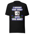 I Bought This Shirt With Your Money Poker Shirt - S / Black is backordered and will ship as soon as it is back in stock.