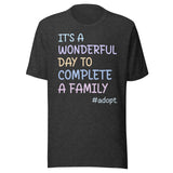 It's a Wonderful Day To Complete a Family Adoption Shirt - S / Dark Grey Heather is backordered and will ship as soon as it is back in stock.